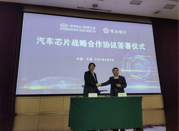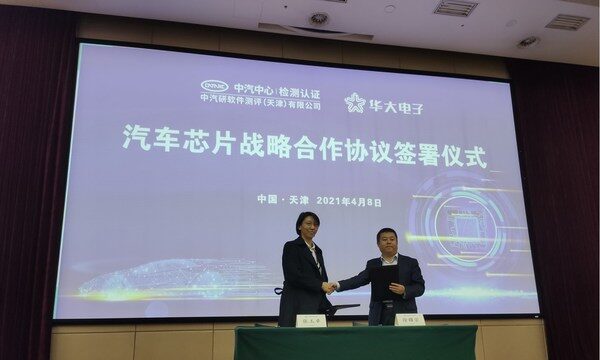 天津2021年4月12日 /新闻稿网 - Xinwengao.com/ — 2021年4月8日,汽车芯片战略合作联合发布会暨第一届汽车芯片安全技术研讨会在天津召开,北京中电华大电子设计有限责任公司(简称“华大电子”)作为中国安全芯片龙头企业受邀参加,并在会上与主办方中汽中心中汽研软件测评(天津)有限公司签署战略合作协议,双方将以汽车芯片安全技术为出发点,充分发挥各自优势,共同推进跨界融合,协同发展,共建汽车芯片安全生态。