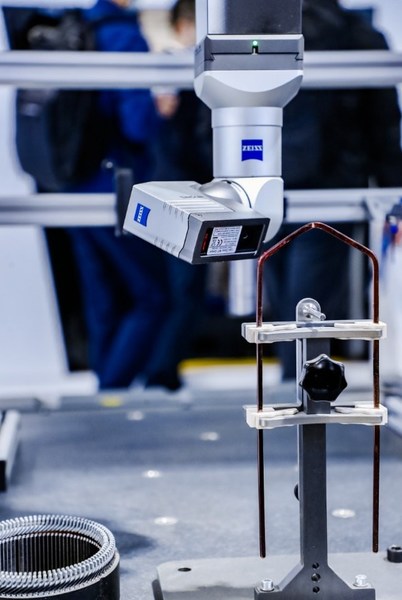 蔡司向观众展示了六大行业创新质量解决方案,包括医疗、新能源汽车、航空航天、消费电子、风电、智能工厂,以及六大技术平台和两大应用场景。特别是新能源汽车以高占比成为工业驱动力所在和全球投资热点,而中国新能源汽车发展在全球靠前的地位愈加突显;医疗领域,中国“十四五”规划明确了民生产业发展重点就是要提升高端医疗水平;在航空航天,中国航空发动机战略投资巨大,不断有新产品落地。正是看清了这些大势,蔡司中国针对中国产品结构、产业结构和生产能力的释放空间,抓住工业升级的机会,探索创新创造出灵活、面向未来的行业解决方案。蔡司展台并不是按产品布置传统的软硬件,而是以不同行业解决方案展示其针对行业的核心能力,就是因为蔡司善于探索并把握住行业热点机会。在新能源汽车领域中,电池、电机和电控“三电”产品最重要,也是全新架构,其性能好坏决定了新能源汽车的最终品质,所以这次展会上,蔡司与德国总部联合展示了新能源汽车“三电”领域最新解决方案,比如用X射线来检测电池内部结构,用传统三坐标配上激光测头测量现在最流行的发卡电机,对里面的扁铜线进行检测。