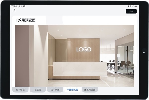 inSolution第三个也是在带看中深受企业租户热捧的功能是看房报告。在带看结束后,inSolution可以立即生成拥有完整信息的电子看房报告传送至客户手机。报告中不仅涵盖楼宇介绍、平面布局、效果图示,还匹配了对应的造价、工期、物料等,打破效果图与实际落地之间的壁垒。同时,该报告支持一键转发,可以快速分享决策层了解看房详情,进而加快决策进程。