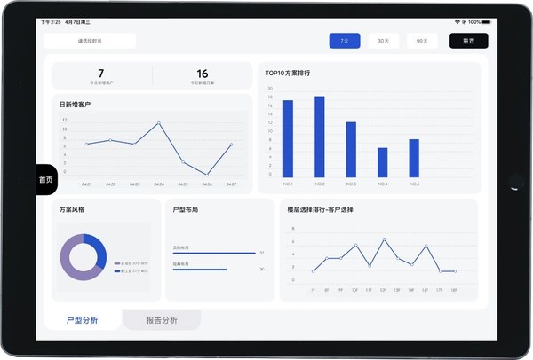 最后,inSolution支持客户深层数据挖掘功能。依据前端实时带看数据的采集用户行为数据,完成看房报告分析、户型选择统计,沉淀用户真实期望、诊断热门户型和难租户型,进而助力产品升级和招商策略优化,最终提升招商带看转化率。