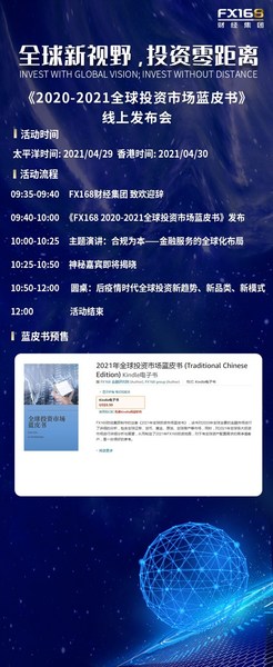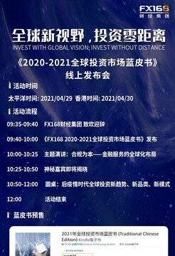上海2021年4月24日 /新闻稿网 - Xinwengao.com/ — 2021年4月30日,FX168财经集团出版的《2021年全球投资市场蓝皮书》将举办在线发布会,并将揭晓“FX168 2021年投资地图”。