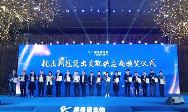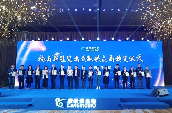 天津2021年4月27日 /新闻稿网 - Xinwengao.com/ — 目前大规模新冠疫苗接种工作正在全国如火如荼地展开,为了尽快将安全有效的疫苗带给民众,助力中国新冠疫苗产能提升,4月25日康希诺生物股份公司在天津举办了新冠疫苗三期生产基地产品下线仪式,标志着康希诺新冠疫苗三期生产基地生产的重组新型冠状病毒疫苗正式投入市场。圣戈班生命科学代表应邀参加了该盛大活动,并获得康希诺授予的“抗击新冠突出贡献供应商”殊荣。