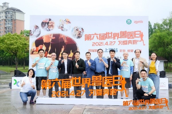 上海2021年4月27日 /新闻稿网 - Xinwengao.com/ — 伴随着第二十一届世界兽医日的到来,中国兽医协会携手硕腾公司在北京、上海、成都、深圳四地同时举办了第六届“世界兽医日,为爱奔跑”5KM公益跑活动。在本次活动的主会场上海大宁郁金香公园,中国兽医协会副会长兼秘书长辛盛鹏、中国兽医协会宠物诊疗分会会长夏兆飞、北京市小动物诊疗行业协会秘书长刘朗、上海市宠物行业协会会长杨其清、硕腾大中华区总经理王庆、硕腾中国宠物事业部总经理李毅以及各地行业协会代表、专家代表、连锁机构代表等出席了开幕式。