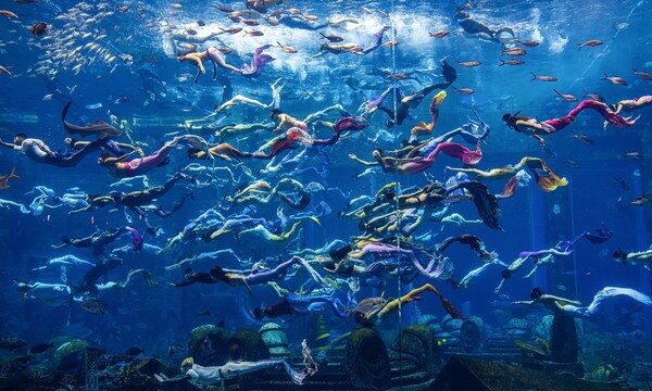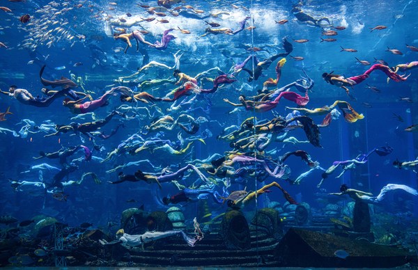 三亚2021年4月30日 /新闻稿网 - Xinwengao.com/ — 2021年4月28日,110名专业 PADI 美人鱼表演者在复星旅文·三亚亚特兰蒂斯的大使环礁湖中完成了“最大规模的水下人鱼秀”吉尼斯世界纪录称号。