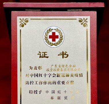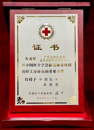 广州2021年5月6日 /新闻稿网 - Xinwengao.com/ — 春暖花开,“疫霾”尽。在大家期盼中,国内疫情一如所料得到控制。也是这时,绿色金控收到了一份意义非凡的包裹 — 中国红十字奉献奖章与证书。为表彰企业在新冠肺炎疫情防控工作中所作出的贡献,日前,中国红十字会总会授予绿色金控中国红十字奉献奖章与证书。