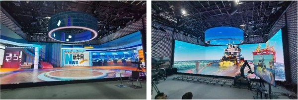 设置开放展示的100平方米混合现实演播厅展示区,在演播室区域内做三维动态展示布景。并通过摄像机三面LED屏幕实时联动,可切换到新华网混合现实虚拟融合拍摄场景数个应用场景,向参观者展示混合实现的超强视觉体验!未来感、科技感十足,必将成为现场参观者的热门“打卡地”。