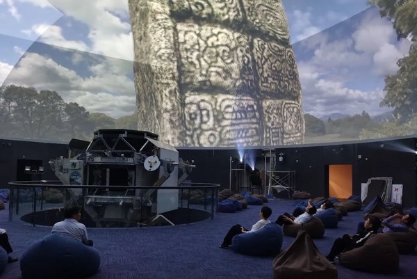 现场同时设置球幕影院,观众厅为圆顶式结构,屏幕呈半球形,观众被包围其中,视屏幕如同苍穹。由于屏幕影像大而清晰,自观众面前延至身后,且伴有环绕立体声,使观众如置身其间,临场效果十分强烈。立体动感球幕影院作为比球幕影院、巨幕影院、环幕影院以更具震撼力的表现形式,是公认的目前能体现“身临其境”感觉的更佳的播放载体。