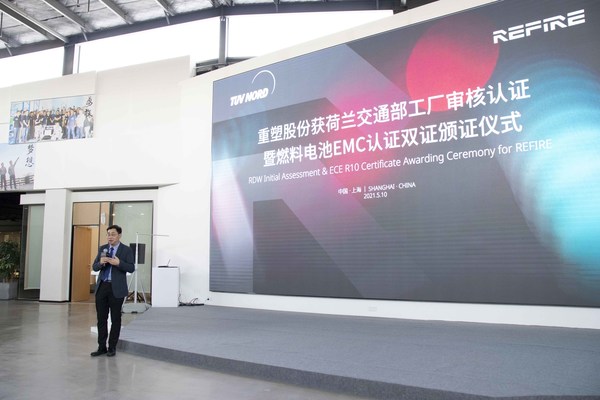 在颁证仪式上,TUV NORD亚太区总裁兼大中华区董事长任骏对重塑股份作为TUV NORD首次助力的国内燃料电池企业成功获得RDW工厂评估以及氢燃料电池EMC认证证书表示祝贺,并表示“在提倡实现碳中和,减排的大背景下,TUV NORD一直致力于节能减排领域,可利用丰富的经验为企业提供专业的技术服务。”