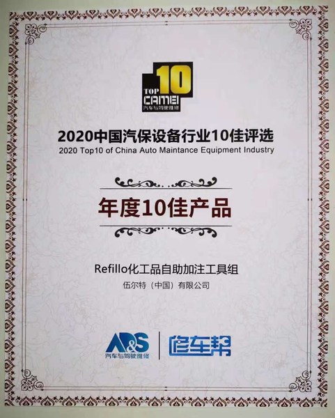 北京2021年5月14日 /新闻稿网 - Xinwengao.com/ — “2020年度中国汽保设备行业10佳评选”于2021年3月27日在北京如期举办,“伍尔特REFILLO®化工品自助加注工具组”通过现场专家评审会的评选。