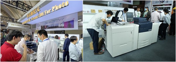 此次富士胶片与富士胶片商业创新(原富士施乐)合作推出的、为中国影像行业“量身定制”的碳粉数码印刷解决方案V180i For Photo首次亮相P&E,与北京影像行业同仁见面。这款产品操作简单、自动化程度高,能减少大量人力投入,且平均月产能高达8万张纸(约1.2万平米)、图像分辨率达到2400*2400dpi,帮助快速准确打印具备专业影像品质的照片、相册等,搭配同时展出的覆膜机,为用户一站式提供从高品质打印到精致覆膜的解决方案,特别适合毕业相册、婚纱影集等的高速大批量输出需求。