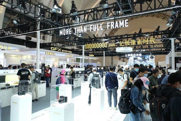 除了经典传承的X系列,富士胶片自2017年推出旗下首款搭载5140万像素44x33mm传感器的中画幅无反数码相机GFX 50S以来,重新定义了“中画幅相机”概念,此后又接连在2018年发布GFX 50R掀起复古旁轴旋风、2019年带来GFX 100领航“亿时代”、2021年新品GFX 100S更以升级便携体验“圈粉”无数,富士胶片中画幅系统已深受众多中国商业和专业摄影师、以及高端摄影发烧友的喜爱。在P&E 2021 富士胶片展台正面迎接观众的正是“MORE THAN FULL FRAME:100,000,000 pixels 亿级像素时代”震撼主题标识,以纵长形的展台整体设计,邀请观众进入探索和感受富士胶片中画幅系统的一切。