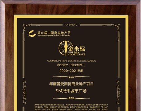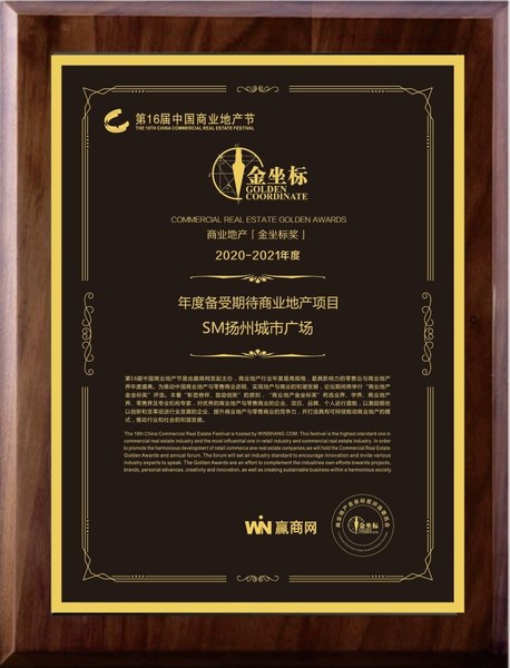 厦门2021年5月21日 /新闻稿网 - Xinwengao.com/ — 5月20日,中国商业地产“金坐标”大奖在第16届中国商业地产节揭晓。其中,东南亚最大的综合性地产开发商之一 — SM集团投建的“SM扬州城市广场”,获评金坐标“年度备受期待商业地产项目”奖。SM中国高级助理营运副总裁Ronald Allan Brosas代表SM领奖。