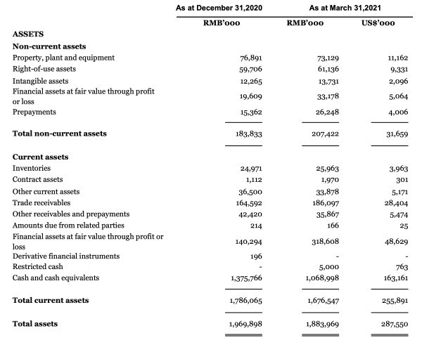 截至2021年3月31日,公司现金和现金等价物总计价值10.69亿元人民币(1.632亿美元),相较于2020年12月31日为13.758亿元人民币出现下降,原因是本季度现金净额用于经营活动和投资活动,其中包含净亏损1.15亿元人民币,以及购买价值为人民币1.971亿元现金和外汇管理类理财产品。