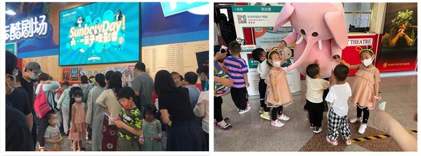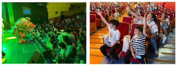 活动现场,在演出开始之前,前来的家长和小朋友已经兴高采烈,拿到观影票和精美伴手礼的家长和小朋友露出了开心的笑容。这里还有丰富的互动活动,更有拍照留影区、互动体验区以及游戏区。化身粉色大象的卡通玩偶,萌萌哒,受到了小朋友们的喜爱,更有七彩泡泡带小朋友走进梦幻的世界。在这里小朋友与家长们尽情享受着节日的欢乐!
