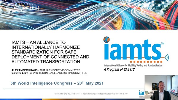 天津2021年5月25日 /新闻稿网 - Xinwengao.com/ — 5月20日, TUV 南德意志集团(以下简称“TUV南德”)作为国际智能网联汽车合作联盟(以下简称“IAMTS”)创始成员单位受邀出席第五届世界智能大会车联网先导应用创新发展国际高峰论坛。TUV南德全球交通服务部高级副总裁、IAMTS执委会第一任主席Alexander Kraus做主旨发言,分享了联盟自成立以来,在支持自动化出行的开发和市场投放,制定和协调全球公认的自动驾驶试验方法及标准方面所取得的阶段性成果。本届论坛围绕智慧交通、智能网联、先导应用等领域,通过对车联网产业标准制定、商业模式及实施策略与路径展开深入研讨和交流,旨在搭建国际化智能科技领域先进成果平台、创新平台、产品聚焦平台,促进车联网产业健康、可持续发展。
