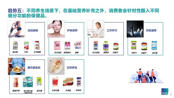 趋势五:不同养生场景下,在基础营养补充之外,消费者会针对性摄入不同细分功能的保健品