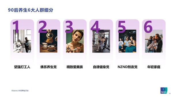 根据对保健品的主要需求的不同,益普索Ipsos将90后养生人群细分成六大类: