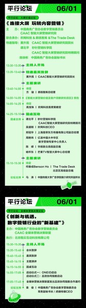 >>还将同步举行三场行业平行论坛,聚焦于智能大屏营销、全媒体营销决策及汽车营销领域,如果对这些领域比较关注,显然不容错过。