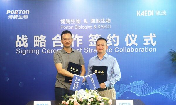 苏州2021年6月1日 /新闻稿网 - Xinwengao.com/ — 2021年5月31日,苏州博腾生物制药有限公司(以下简称博腾生物)宣布与南京凯地生物科技有限公司(以下简称凯地生物)达成战略合作。博腾生物以端到端的基因与细胞治疗CDMO服务平台,为凯地生物新型CAR-T细胞疗法提供CMC研究开发服务,加速细胞治疗药物研发进程。