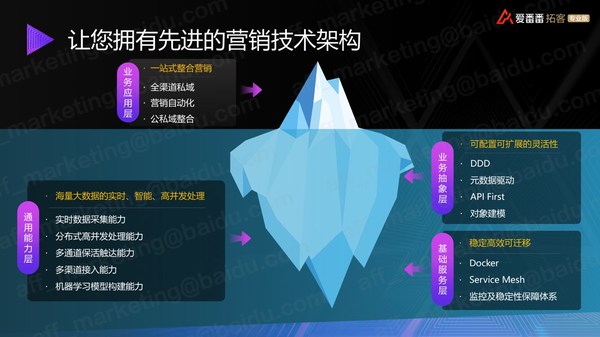 作为公私域整合营销的SaaS软件,技术永远是最关键的因素之一。百度爱番番技术架构师甘露介绍到,爱番番的技术具备三大特点:先进的技术架构、业界领先的更新速度,和全方位的安全保障。