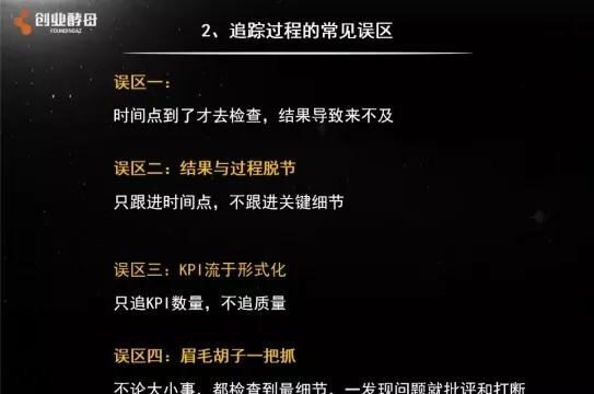 追过程很重要,但很多管理者经常会陷入到误区当中,从而事倍功半。通常来说,追过程的误区有四个: