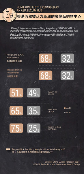 香港仍然被相当比例的两地受访者认同为亚洲的奢侈品购物中心