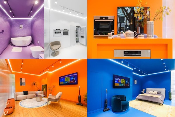 橙色的客厅象征着交流与分享,借明亮、温暖的立邦色彩,Villeroy& Boch德国唯宝茶具组合以及Natuzzi Italia的家居家具搭配营造出包容、友好的氛围,成为联结人与人之间重要的情感场所;绿色外墙内纯白的现代厨房,借助先进的JIMMY速干洗地机与博世家电的厨房科技,让油污不再是阻挡表达个性色彩的因素,让厨房也能成为家中时髦的亮点;卧室被Natuzzi Italia的床品、家具披上静谧的蓝色外衣,瞬间隔绝闹市的嘈杂,带观者快速切换到平和的睡眠状态,最后的卫浴空间Villeroy& Boch德国唯宝为体验者创造了一次极具戏剧与浪漫色彩的空间体验,让洗漱也能成为一场梦幻的旅程。