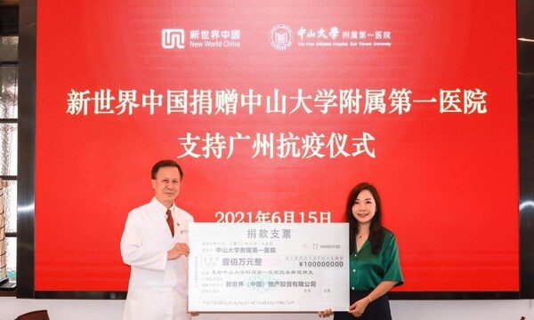 广州2021年6月16日 /新闻稿网 - Xinwengao.com/ — 6月15日,新世界中国宣布捐赠人民币100万元给中山大学附属第一医院(以下简称“中山一院”),全力支持广州疫情防控,成为这一轮广州抗疫战线上,首家捐款的港企。