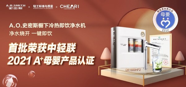 在本次会议上“母婴人群”又一次被提到一个新的高度。随着国家三胎政策的放开,社会老龄化趋势的日益加剧,健康家电品类特别是净水器,已经从消费趋势变成了生活必需品。但市场上的宣称为母婴人群定制的产品让人眼花缭乱,选择很多,能放心选择的却太少。在如此严峻的市场考验下,《轻工标准与质量》杂志社联合中国家电研究院通过试验测评,重重筛选,评选出A.O.史密斯橱下冷热即饮净水机DR1600HF2、大流量净水机R2000BG1荣获2021A+首批母婴特色产品认证。