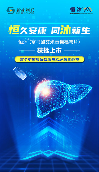 上海2021年6月23日 /新闻稿网 - Xinwengao.com/ — 翰森制药集团有限公司(以下简称“翰森制药”或“公司”)自主研发的1类新药恒沐®(富马酸艾米替诺福韦片)获得国家药品监督管理局(NMPA)批准重磅上市,用于慢性乙型肝炎成人患者的治疗。恒沐®是翰森制药自主研发的第5个1类创新药。