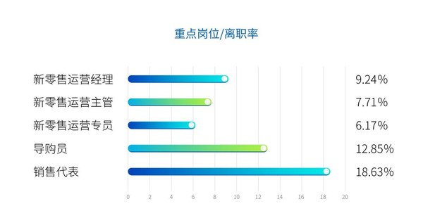 过去三年的数据不难看出,新零售营销人员的薪酬增长率高于线下传统的导购及销售代表,稳定性也较线下人员更强一些。
