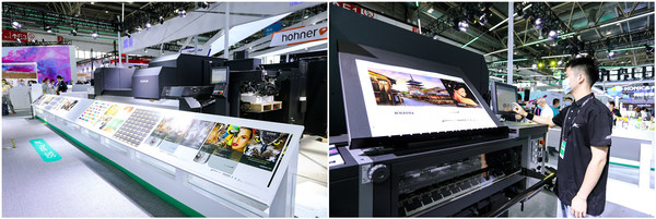 在此次的富士胶片联合展台中,左右区域分别为富士胶片(中国)和富士胶片商业创新(中国)旗下的多种新产品,而中心“融合区”则集中展示了富士胶片(中国)与富士胶片商业创新(中国)在商业印刷、影像输出、包装印刷三大领域的应用成果。展台还设有“概念超市”,以模拟超市的形式,再次生动呈现了双方在产品包装、广告、影像输出等领域的多种应用方式,激发客户灵感。