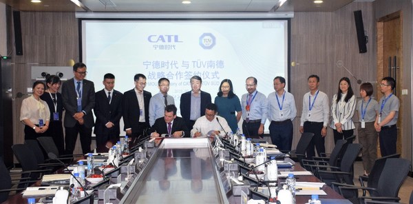 宁德2021年6月28日 /新闻稿网 - Xinwengao.com/ — 近日,TUV南德意志集团(以下简称“TUV南德”)与全球领先的锂离子电池研发制造企业 — 宁德时代新能源科技股份有限公司(以下简称“宁德时代”)签署战略合作协议。双方就海外市场合规性,安全生产风险评估,供应链管理,电池产品安全,以及可持续发展等方面达成共识,以期在新能源产业健康安全发展的道路上并肩前行。宁德时代集团总裁周佳先生,宁德时代供应链联席总裁曾嵘女士,TUV南德管理委员会成员兼全球首席运营官Ishan Palit先生、TUV南德北亚区首席执行官Dirk von Wahl先生等见证了此次战略合作签约仪式。