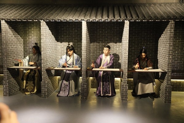 紧跟时下剧本杀及沉浸式戏剧风靡的潮流,大型沉浸式剧情实景秀“金榜题名时”即将再度升级,加入全新剧本杀玩法及沉浸式演出剧目。为此,博荟广场联手故宫酒文化于6月25日为“金榜题名时”沉浸展举办了一场开幕仪式,更全面地向观众展示展览的繁多亮点,大开穿越之门,静待“未来”客来。
