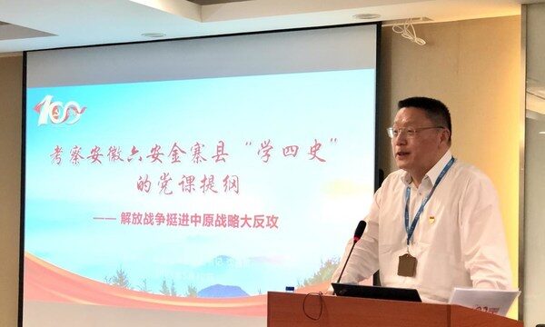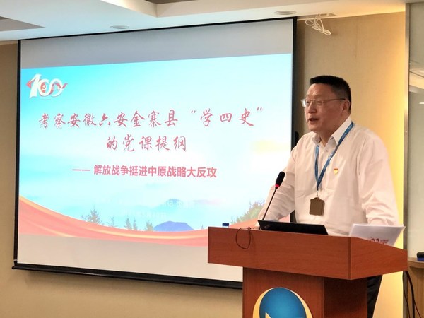 随后,沈副书记围绕四史的意义、党史中的三次国内革命战争和抗日战争、党史中的解放战争、战略反攻阶段的挺进中原、战略反攻的思考与总结以及关于“金寨”的故事,带领全体党员干部深入浅出地对这段伟大的历史时期进行了系统性学习。最后,沈副书记勉励大家通过学习解放战争战略大反攻的历史,做到学史明理,学史增信,学史崇德,学史力行;做到学党史,悟思想,办实事,开新局;坚持把“不忘初心,牢记使命”作为党的建设永恒课题和党员干部的终身课题。