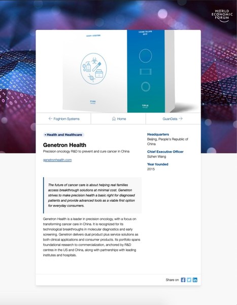 泛生子与世界经济论坛一直颇有缘分:去年6月,泛生子凭借卓越的探索精神和创新能力,从几十个国家数百名候选企业中脱颖而出,作为入选的唯一一家“医疗和健康管理”类目企业,进入世界经济论坛“2020年科技先锋(Technology Pioneers 2020)”榜单。