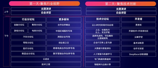 峰会设立了医疗、教育、汽车、制造、零售、金融、电商、游戏八大行业分论坛,以及专门为中国创业者定制的创业者之日、中国区域服务专场、跨国企业专场、跨境电商合作伙伴专场、数字营销合作伙伴专场,将从不同专业领域,为与会者带来不同行业视角的实践分享。与会者将能了解到各行业的技术趋势,有效结合本地特性、行业特点的案例能够给行业伙伴带去实操经验,而全产业链的案例分享,又能给大家带去基于整个行业变革的启发。