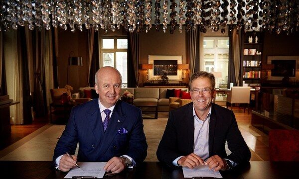 德意志酒店集团及施柏阁酒店股份公司首席执行官马库斯·贝纳尔(Marcus Bernhardt)与保时捷设计精品集团首席执行官杨·贝克尔(Jan Becker)于法兰克福施柏阁大观酒店会面并签署了品牌授权等相关协议。