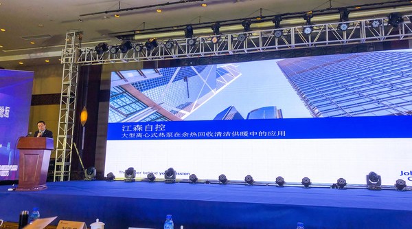 上海2021年7月15日 /新闻稿网 - Xinwengao.com/ — 近日,全球智慧、健康、可持续建筑领导者江森自控携高效节能的余热回收清洁供暖解决方案亮相“2021中国城镇供热-可再生能源高峰论坛”。来自江森自控中国区供热业务的邓伟鹏博士在大会上发表了《大型离心式热泵在余热回收清洁供暖中的应用》主题报告,分享了江森自控对于中国北方城镇清洁供暖的思考、江森自控旗下约克品牌全系列离心式热泵解决方案以及不同场景中落地可行的实践案例。