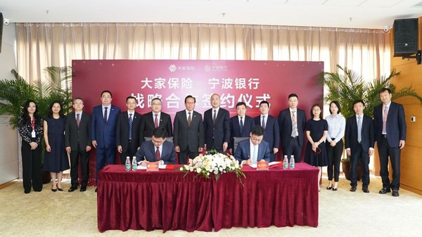 北京2021年7月16日 /新闻稿网 - Xinwengao.com/ — 7月13日,大家保险与宁波银行在京签署战略合作协议,充分发挥双方优势,开展全方位、多层次的业务合作,共同探索建立合作新机制。大家保险集团总经理徐敬惠、集团监事长孙先亮、宁波银行行长罗孟波以及双方有关部门、子公司负责人等共同出席并见证签约仪式。大家保险集团总经理助理兼董事会秘书赵鹏、宁波银行副行长付文生代表双方签署协议。