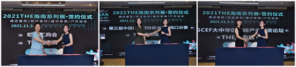 本次发布会现场,多项重量级活动赛事以及国际商贸采购对接服务正式签约落地THE海南展现场。海南潮域展览副总经理李丹分别与欧美工商会、GCEF大中华区咖啡产业精英论坛主办方、中国调茶师技能大赛主办方签署了战略合作协议,双方将围绕国际采购对接、商贸配对服务、主题行业活动、论坛及赛事等方面开展深入合作,致力共同提升展会一站式商贸平台作用,为参展商、行业观众、产业链上下游企业及相关业内人士带来高值有效的观展参展效益,带动酒餐行业联动发展,为海南自贸港及国际旅游消费中心的建设发展添薪加火。