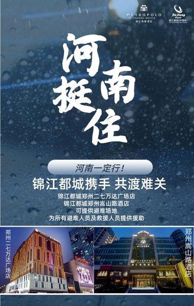 最后,锦江都城提醒广大宾客,在此期间注意出行安全,如无必要情况,近量避免前往雨情较大地区。以乐观、理性的态度应对此次特大暴雨汛情。锦江都城酒店品牌将与大家携手共渡难关。