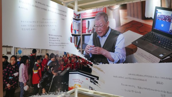 在拐角处,孩子们和老人们互相往来的信件一封封地呈现在展板上 — “北大前校长陈老爷爷和我们分享‘我的存在让别人的生活更美好我才活的有意义,有价值’这句话给了很大启发”、“你们又帮我找回了我的梦想,那一天我开心的像是要飞起来了一样,好感谢你们”。孩子们稚嫩的话语,流露出的是他们受到的鼓舞,老人的回信中也蕴含着和孩子们交流的愉悦。