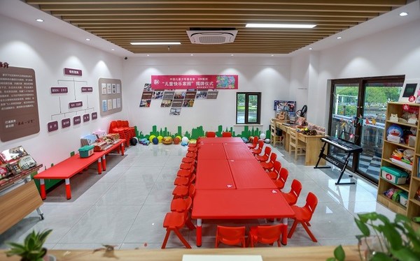 该项目位于苏州市吴中区城南街道的家天下社区党群服务中心内,儿童快乐家园占地面积约70平方米,由中国儿童少年基金会统一配置了电脑、图书、乐器、益智玩具、文体用品等物品。吴中区共有流动儿童3万人左右,占儿童总数的20%,其中多为外来务工人群子女。这些孩子的父母多数每日长时间忙于工作,和农村的留守儿童一样,他们同样缺少来自父母的陪伴,成为了另一种意义上的“留守儿童”,被称为“城市996儿童”。项目启动后,家园将为这些孩子提供益智、玩乐阅读、聚会和交流的场所,当地妇联和SM购物中心还将不定期组织志愿者开展丰富多彩的文体活动和亲子活动,让爱不再留守。