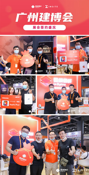 展会期间,「inSpire壹模壹样」、「inSite营销站」和「inSite我的工地」展位上再次延续了此前在上海建博会的火爆情境,成为整个展会的焦点。抽奖送壕礼、签约砸金蛋的活动吸引了上万人咨询交流,签单量持续刷新,达到百余家企业现场签单。在为期四天的展会中,吸引了上千个精准用户注册,累计新增上百家企业入驻平台。
