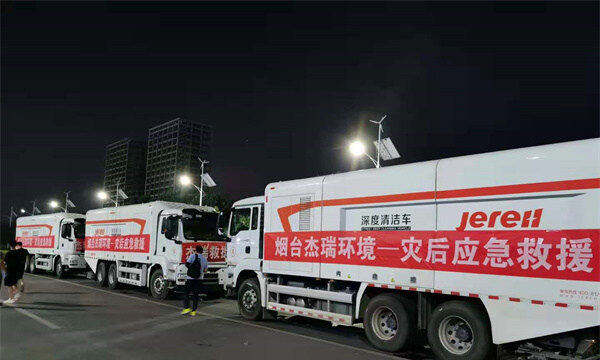 7月23日,首支杰瑞应急救援队抵达河南洛阳,开展清淤工作。24日,第二支救援队抵达河南郑州,25日由芜湖、长沙、西安、武汉、烟台等地组建的杰瑞应急救援队正式在郑州汇合,根据当地救援指挥中心的安排,开展清淤救援工作。