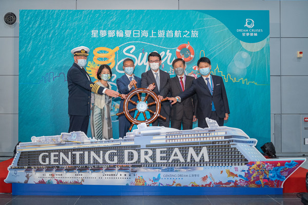 云顶邮轮集团今日于启德邮轮码头举行星梦邮轮“云顶梦号”的复航首航礼,香港特别行政区商务及经济发展局局长邱腾华先生,GBS, JP、立法会议员(旅游界)姚思荣先生,SBS、旅游事务专员沈凤君女士,JP、香港旅游发展局主席彭耀佳博士,GBS, JP与云顶邮轮集团总裁朱福明先生一起见证这一历史性的时刻。