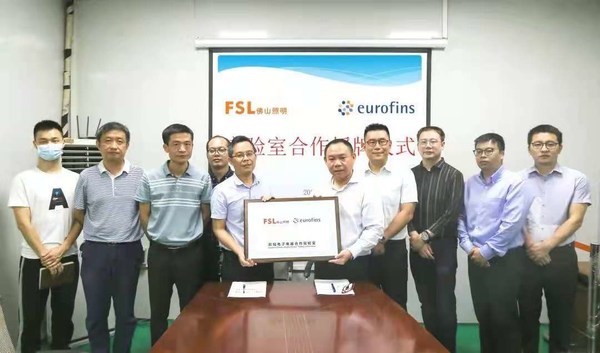深圳2021年8月2日 /新闻稿网 - Xinwengao.com/ — 近日,Eurofins欧陆科技集团(以下简称“Eurofins欧陆”)与佛山照明实验室(以下简称“佛山照明”)举行联合实验室签约授牌仪式,宣布双方在灯具照明领域即将展开深入合作,共同探索相融共赢之路。Eurofins欧陆大中华区电子电器业务总经理张剑、佛山照明实验室主任余少涛等领导出席仪式现场并为合作实验室揭牌。