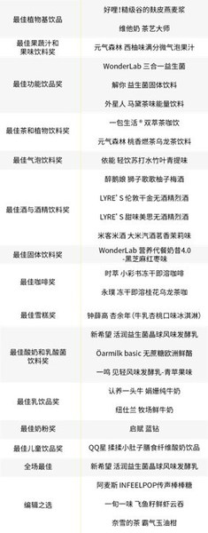 杭州2021年8月5日 /新闻稿网 - Xinwengao.com/ — 6月30日,由FBIF食品饮料创新论坛策划主办的第四届Wow Food Awards(WFA,原Hello Foods Prize新品大赏)——全球创新食品评鉴大赛获奖作品揭晓仪式暨颁奖典礼在杭举行。 本届WFA共有54款产品获得「最佳品类奖」,其中,最佳品类奖的第一名被授予了「全场最佳」的荣誉称号。此外,有10款产品获得「最受消费者欢迎奖」。还有3款产品因产品特色突出,获得了Wow Food杂志「编辑之选」的荣誉称号。 Wow Food Awards 2021颁奖典礼 我们本届WFA共收到来自百余家企业的376组作品,相比去年,参赛报名数量增长了89%。涵盖了包括乳饮品、酸奶、烘焙食品、滋补食品、方便食品、坚果炒货、肉制品、固体饮料、果蔬汁、植物蛋白饮品、茶饮、咖啡、酒饮、植物基食品饮料、功能性食品饮料等24种品类的食品饮料。 在经过18位初赛评委品鉴之后,共有60%的参赛产品(225组)进入决赛,又经过29位决赛评委的专业品鉴,最终确认了获奖作品名单。此外,本届WFA还增设了一个特色单元,邀请消费者代表参与投票,从376组参赛作品中选出获得了“最受消费者欢迎奖”的作品。 一、54款“最佳品类奖”,揭秘24个品类的创新密码 全场最佳 作品名:新希望 活润益生菌晶球风味发酵乳获奖者:新希望乳业股份有限公司作品简介:新希望活润晶球酸奶特别添加HN-2益生菌群、乳双歧杆菌BL-04,自主专利菌种鼠李糖乳杆菌grx-10,科学益生菌配方强化肠道健康与免疫功能。同时,相比传统的益生菌酸奶,这款产品采用自主研发、全国首创的3D包埋技术,将“看不见,摸不着”的益生菌赋予“嚼得到的Q弹”新体验,每颗益生菌晶球包含2000万颗小的益生菌晶球,即使晶球咀嚼破碎,仍可以保证对益生菌保护效果。 1、最佳滋补品奖 作品名:胶趣 鲜炖花胶(椰奶)获奖者:深圳市胶趣鲜炖滋补品有限公司 作品名:久年 《国家宝藏》IP联名款-元气花胶鸡获奖者:杭州柒耀网络技术有限公司 作品名:鲜炖花胶(杨枝甘露味)获奖者:广东参之源健康科技有限公司 2、最佳植物基饮品奖 作品名:好哩!糙级谷的麸皮燕麦浆获奖者:臻方企业管理(上海)有限公司 作品名:维他奶 茶艺大师获奖者:维他奶有限公司 3、最佳植物基食品奖 作品名:Omni新荤主义 新餐肉获奖者:绿客门(上海)贸易有限公司 4、最佳雪糕奖 作品名:钟薛高 杏余年(牛乳杏桃口味冰淇淋)获奖者:钟薛高食品(上海)有限公司 5、最佳甜品奖 作品名:Chcoc Magic 日式益生菌奶の球(草莓干白巧克力)获奖者:蓝河(苏州)食品有限公司 作品名:Keep 高蛋白高纤维黑巧克力获奖者:北京卡路里科技有限公司(Keep) 作品名:巧兮兮 冻干榴莲渗透巧克力获奖者:臻选食品(南京)有限公司 6、最佳酸奶和乳酸菌饮料奖 作品名:新希望活润益生菌晶球风味发酵乳获奖者:新希望乳业股份有限公司 作品名:Öarmilk basic无蔗糖欧洲鲜酪获奖者:北京吾岛牛奶有限责任公司 作品名:一鸣 见轻风味发酵乳(青苹果味)获奖者:浙江一鸣食品股份有限公司 7、最佳乳饮品奖 作品名:认养一头牛娟姗纯牛奶获奖者:杭州认养一头牛生物科技有限公司 作品名:新西兰青草散养3F奶源-纽仕兰牧场鲜牛奶获奖者:新西兰乳业有限公司 8、最佳肉制品奖 作品名:三口匠自烤自乐获奖者:匠鑫(上海)食品有限公司 作品名:CROSSFOOD 藤椒鸡肉丸获奖者:北京乐自由我信息咨询有限公司 9、最佳气泡饮料奖 作品名:依能轻饮苏打水(竹叶青提味)获奖者:山西优珍食品饮料有限公司 10、最佳膨化食品奖 作品名:小伶鼬低脂牛肉脆获奖者:青岛小伶鼬食品科技有限公司 作品名:薄荷上选™ 66%鳕鱼脆脆球(咸蛋黄味)获奖者:上海薄荷健康科技股份有限公司 作品名:食验室 鸡胸肉薯片获奖者:上海银河山田食品科技有限公司 11、最佳奶粉奖 作品名:启赋蓝钻获奖者:惠氏营养品 12、最佳酒与酒精饮料奖 作品名:醉鹅娘 狮子歌歌柚子梅酒获奖者:北京醉鹅娘酒业有限公司 作品名:LYRE’S 伦敦干金无酒精烈酒获奖者:零派(上海)实业有限公司 作品名:LYRE’S 甜味美思无酒精烈酒获奖者:零派(上海)实业有限公司 作品名:米客米酒大米汽酒茗香茉莉味获奖者:上海米客酒业有限公司 13、最佳酱料奖 作品名:欣和 六月鲜 轻8克轻盐原汁酱油获奖者:烟台欣和企业食品有限公司 作品名:禧宝制研料理厨房 藤麻鲜椒获奖者:禧宝制研食品科技(深圳)有限公司 14、最佳即食谷物奖 作品名:家乐氏 谷物脆-黑糖脏脏茶味获奖者:益海嘉里家乐氏食品(上海)有限公司 作品名:西麦 高纤燕麦麸皮450g获奖者:桂林西麦食品股份有限公司 作品名:吃个彩虹-大果粒高纤水果燕麦片获奖者:五谷磨房食品集团有限公司 15、最佳烘焙糕点奖 作品名:派悦坊 好感—辣芝味 意式脆饼获奖者:北京派悦坊餐饮管理有限公司 作品名:浅茶家 小轻条蛋糕获奖者:济南添然烘焙食品有限公司 作品名:唐饼家 霓彩蛋黄酥获奖者:上海香奈食品有限公司 16、最佳果蔬汁和果味饮料奖 作品名:元气森林 西柚味满分微气泡果汁获奖者:元气森林(北京)食品科技集团有限公司 17、最佳固体饮料奖 作品名:WonderLab 营养代餐奶昔4.0-黑芝麻红枣味获奖者:深圳精准健康食物科技有限公司 18、最佳功能饮品奖 作品名:WonderLab三合一益生菌获奖者:深圳精准健康食物科技有限公司 作品名:解你益生菌固体饮料获奖者:杭州曼士元食品科技有限公司 作品名:外星人马黛茶味能量饮