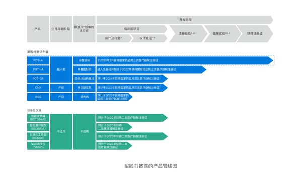 作为辅助生殖领域龙头企业,贝康医疗将持续走创新发展道路,未来五年内完成覆盖全生命周期产品线的注册报证。贝康医疗自主研发的PGS(植入前染色体非整倍体检测)是第一个获得国家药监局批准上市的三代试管产品。PGD(植入前单基因遗传病检测,植入前染色体结构异常检测)试剂盒预计分别在2022年和2024年通过注册审批。